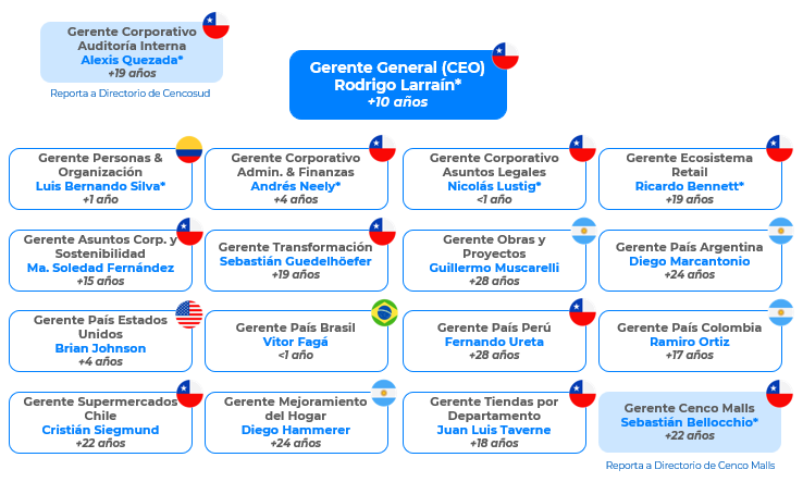 La administración de Cencosud S.A. cuenta con más de 10 años de experiencia en la Compañía.